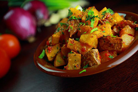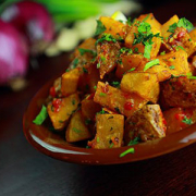 BATATA HARRADès de pommes de terre épicées à la coriandre.