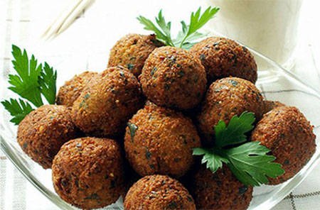 FALAFELBoulettes de pois chiches et de fèves, mélangées à diverses épices (persil, coriandre …), et frites dans l’huile.